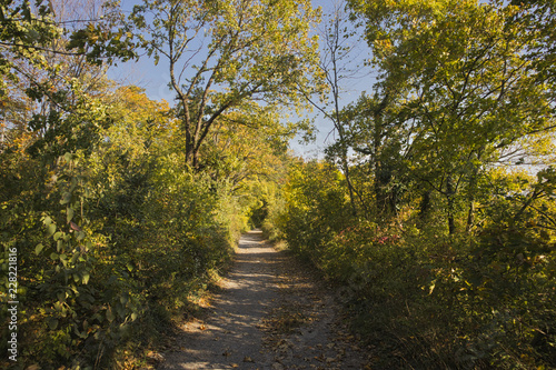 Naklejka premium a colourful path in the woods at autumn