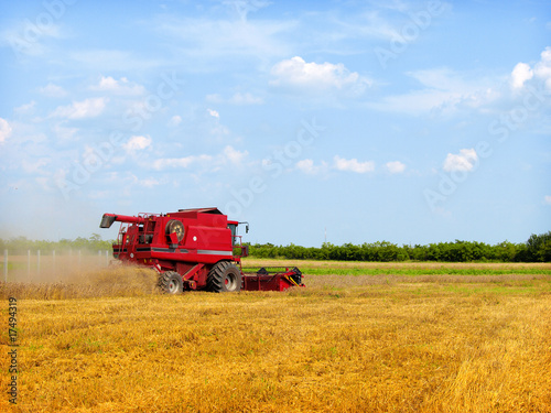 Fototapeta premium A combine harvester working in a wheat field