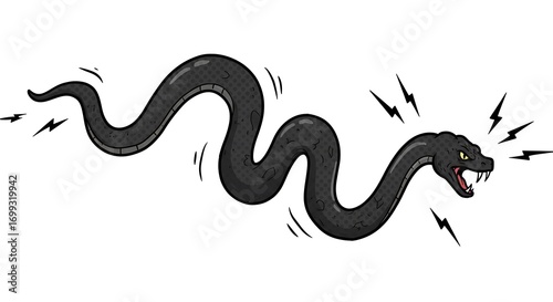 © mr. arsad, Obraz premium A comic style cartoon of an enraged snake striking forward with jagged motion lines, centered on a plain white background