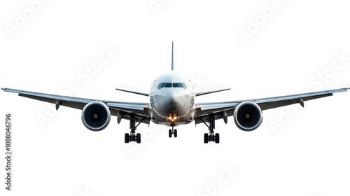 Obraz premium A commercial airplane with its landing gear down, isolated on a white background