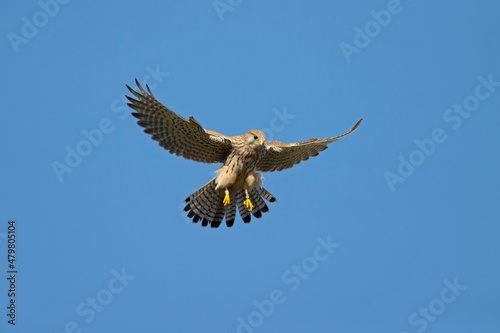 Fototapeta premium A common kestrel (Falco tinnunculus) hovering in the sky.