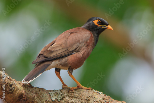 © Sandipan, Obraz premium A Common Myna sitting on a branch of a tree