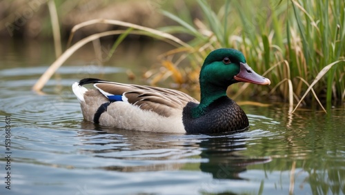 Fototapeta premium A common pochard gliding across a pond surface