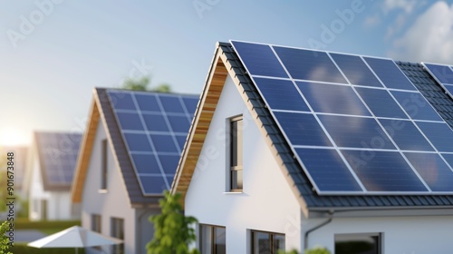 Naklejka premium A community solar project with residents sharing energy generated from local...