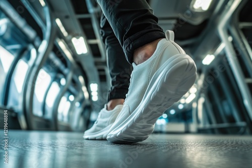 Fototapeta premium A commuter walks on the train platform