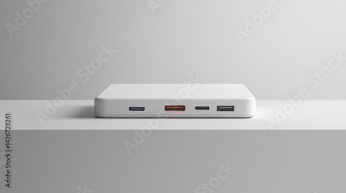 Fototapeta premium A compact power bank isolated on a pure white background, realistic lighting...