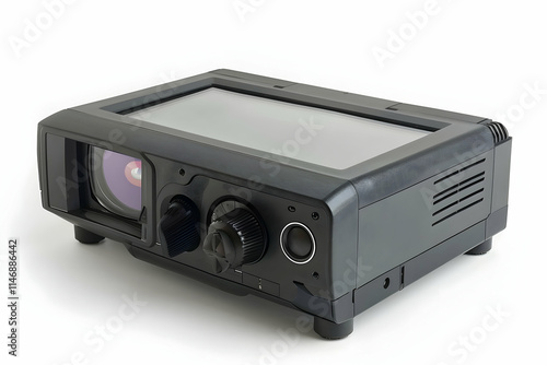 © JSR, Obraz premium A compact projector with lens and adjustment knobs for image display and focus.