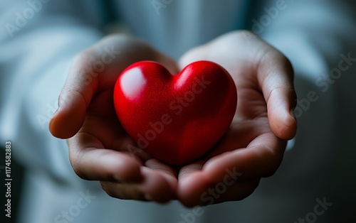 © Itsaree , Fototapeta premium A compassionate doctor holding a red heart