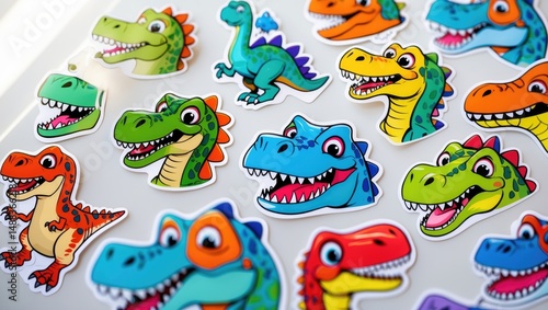 © AbstractAI, Fototapeta premium A compilation of stickers with diverse cartoon dinosaurs