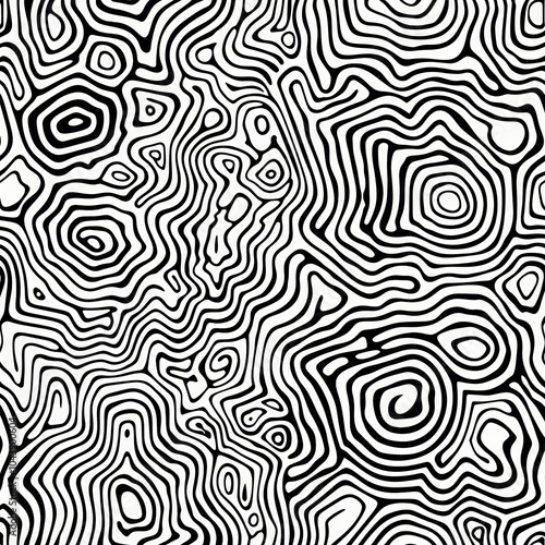 Obraz premium A complex design of swirling black and white patterns creates an intriguing abstract visual. The varied contours and undulating shapes draw the eye, inviting exploration of the texture and flow.