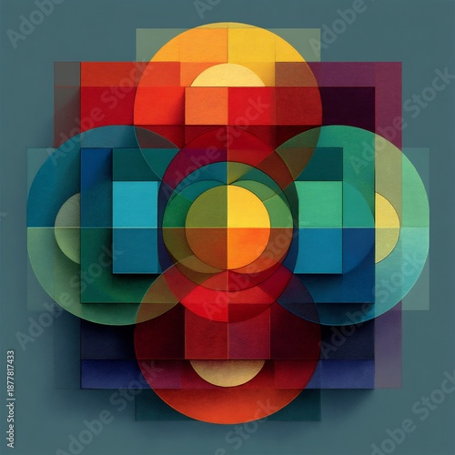 Obraz premium A complex geometric abstract pattern featuring overlapping circles and squares.