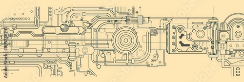 Fototapeta premium A complex machine with gears, pipes, and electrical circuits, symbolizing...