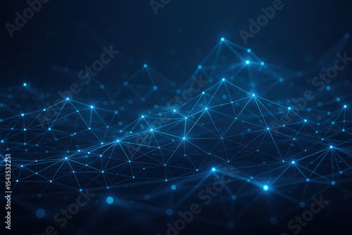 Fototapeta premium A complex network interconnected nodes emits a soft blue glow illustrating digital communication and data in a dynamic business environment