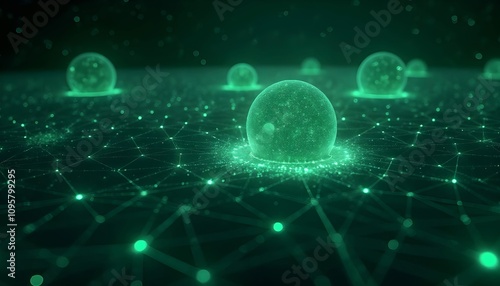 Obraz premium A complex network of interconnected luminous nodes and lines, set against the...