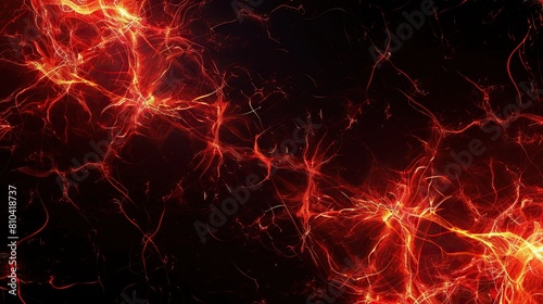 © Salman, Obraz premium A complex pattern of glowing red and orange lines forming an abstract fire network over a pitch-black canvas with a clear space designated for text on the upper left