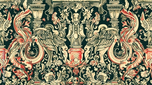 © pprothien, Obraz premium A complex tapestry pattern, blending historical events and mythological figures.