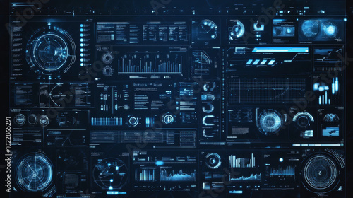 Fototapeta premium A comprehensive and visually striking illustration showcasing a mega pack set of HUD (Heads-Up Display) elements designed for a futuristic blue user interface.