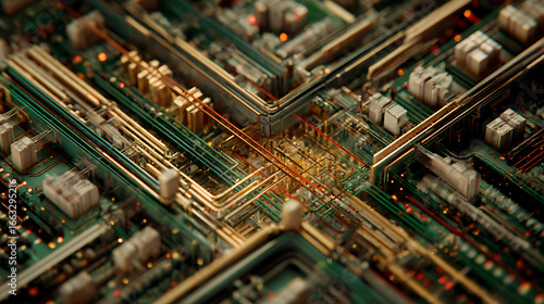 © Kale Galaxy, Obraz premium A computer chip under zoomed view showing intricate network