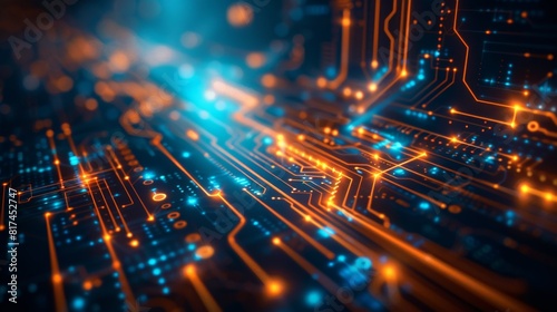 © CreativeLoom, Obraz premium A computer chip with a blue and orange background