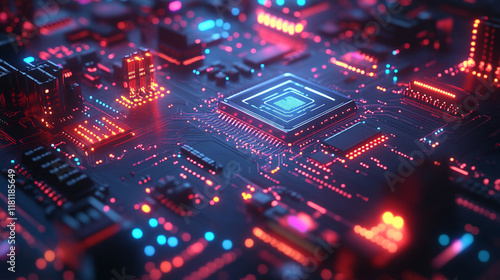 Obraz premium A computer chip with a red and blue background