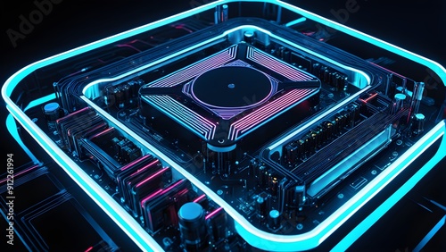 Obraz premium A computer chip with neon lights surrounding it