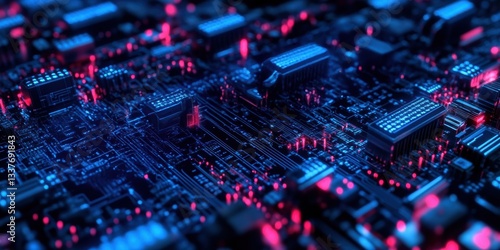 © haha, Obraz premium A computer chip with red and blue colors