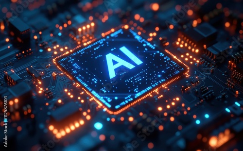 © hakule, Fototapeta premium A computer chip with the letters AI on it
