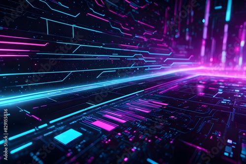 © rizkan, Obraz premium A computer generated image of a futuristic cityscape with neon lights and a blue