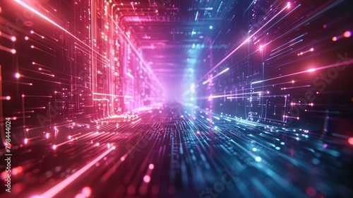 © rizkan, Obraz premium A computer generated image of a futuristic tunnel with neon lights and a blue