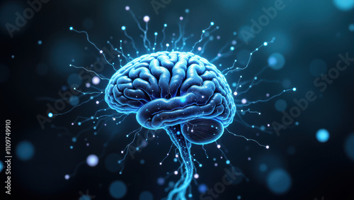 Fototapeta premium A computer-generated image of a human brain with blue lightning emanating...