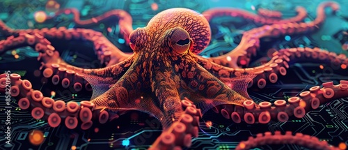 © Natthakan, Naklejka premium A computer generated image of an octopus with a glowing red eye