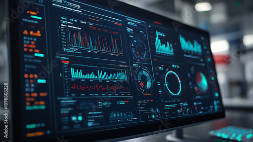 Fototapeta premium A computer monitor displaying data analysis software with graphs, charts, and...