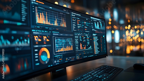 © Pumapala, Obraz premium A computer monitor displaying various data visualizations and analytics.