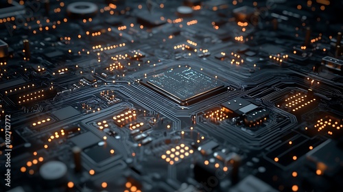 © Shyamal, Obraz premium A computer screen displaying blue background with glowing orange wires
