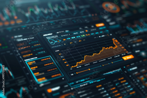 © Formoney, Fototapeta premium A computer screen displays a number of graphs and charts
