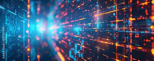 © Vikarest, Fototapeta premium a computer screen displays a series of colorful lights, including a red light, a green light, a blue light, and a yellow light, arranged in a row from left to right