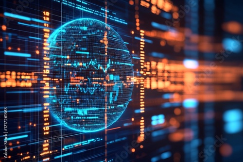 © Wuttichaik, Obraz premium A computer screen shows a blue and orange sphere