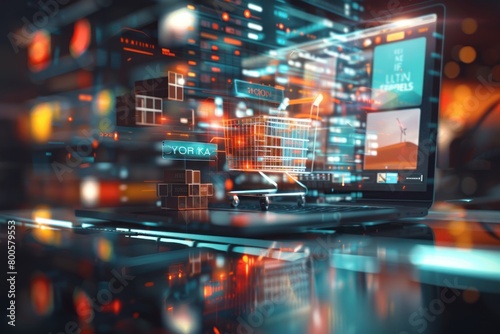 © Nico, Obraz premium A computer screen shows a shopping cart