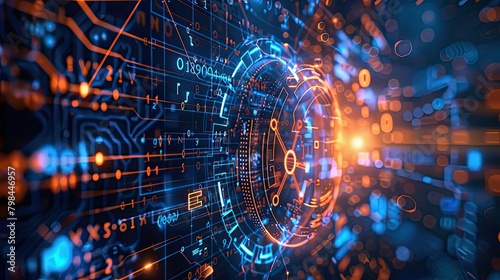 © rizkan, Obraz premium A computer screen with a blue and orange background