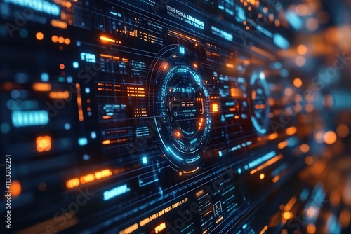 Obraz premium A computer screen with a bright glowing circle icon