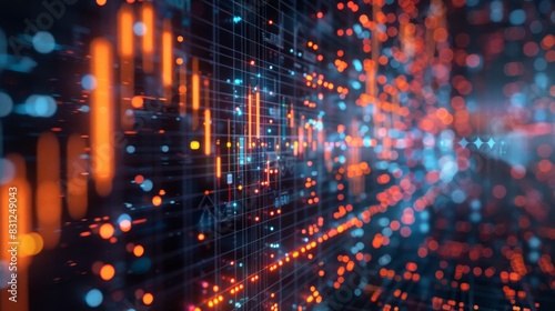 © Natthakan, Fototapeta premium A computer screen with a lot of orange and blue lines