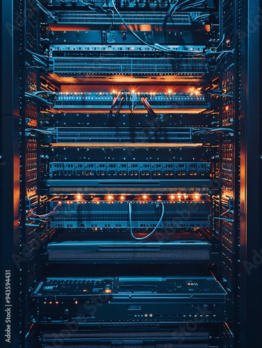 © Pointofview, Obraz premium A computer server room with many wires and cables