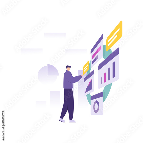 Fototapeta premium a concept of a data analyst, business management, financial manager. illustration of a man analyzing and managing an information data or graph. flat style. vector design element