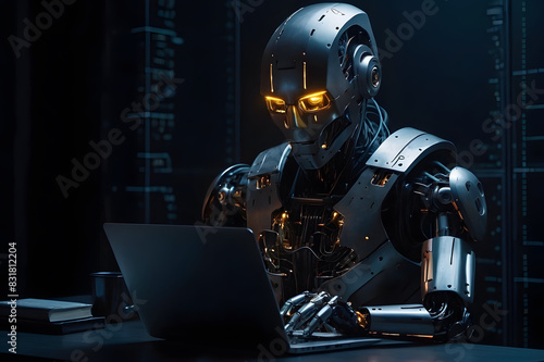 © AungThurein, Fototapeta premium A concept of a modern robot hacking the digital network