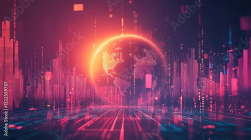 Naklejka premium A conceptual futuristic economy with a split-color world globe, floating...