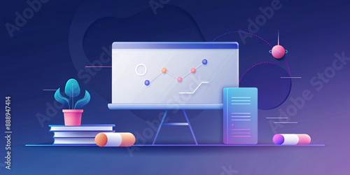 © Anhen Design, Obraz premium A conceptual illustration showing a professional giving a presentation to a team, with abstract elements and modern design, symbolizing education, training, and teamwork