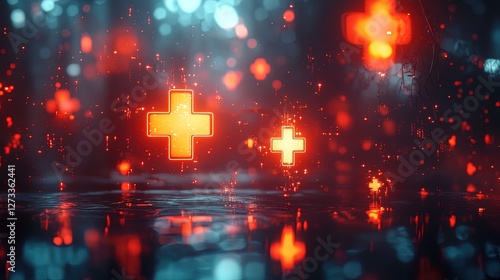 Obraz premium A conceptual image of glowing first-aid symbols floating in a serene space