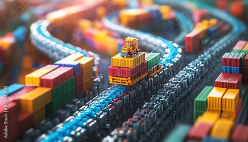 © Nattapat, Obraz premium A conceptual image showcasing the flow of goods through intricate global value chains