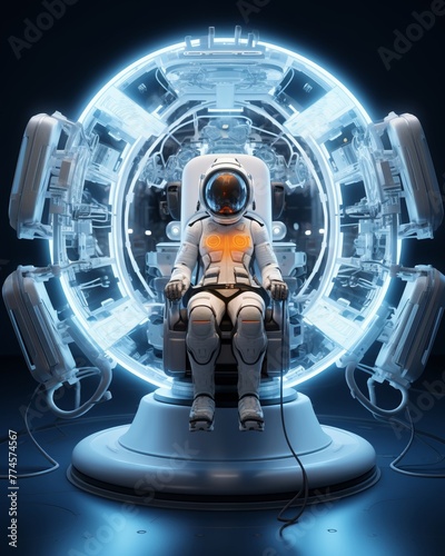 Naklejka premium A conceptual sketch of an AI-driven robotic assistant, designed to perform maintenance and daily tasks in space stations or on other planets