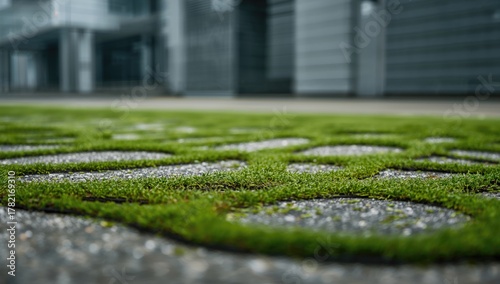 Naklejka premium A concrete floor adorned with vibrant green moss, showcasing the beauty of...